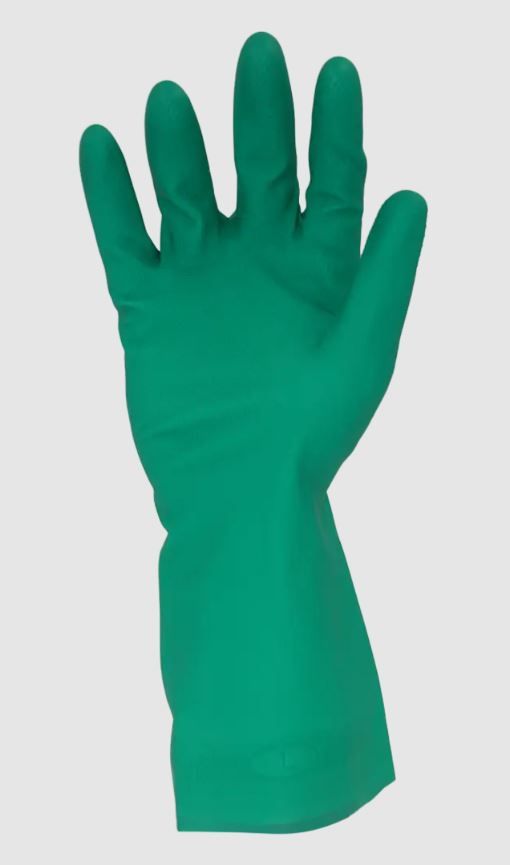 - 15 Mil Nitrile Green Flock lined Glove forcomfort and perspiration absorption