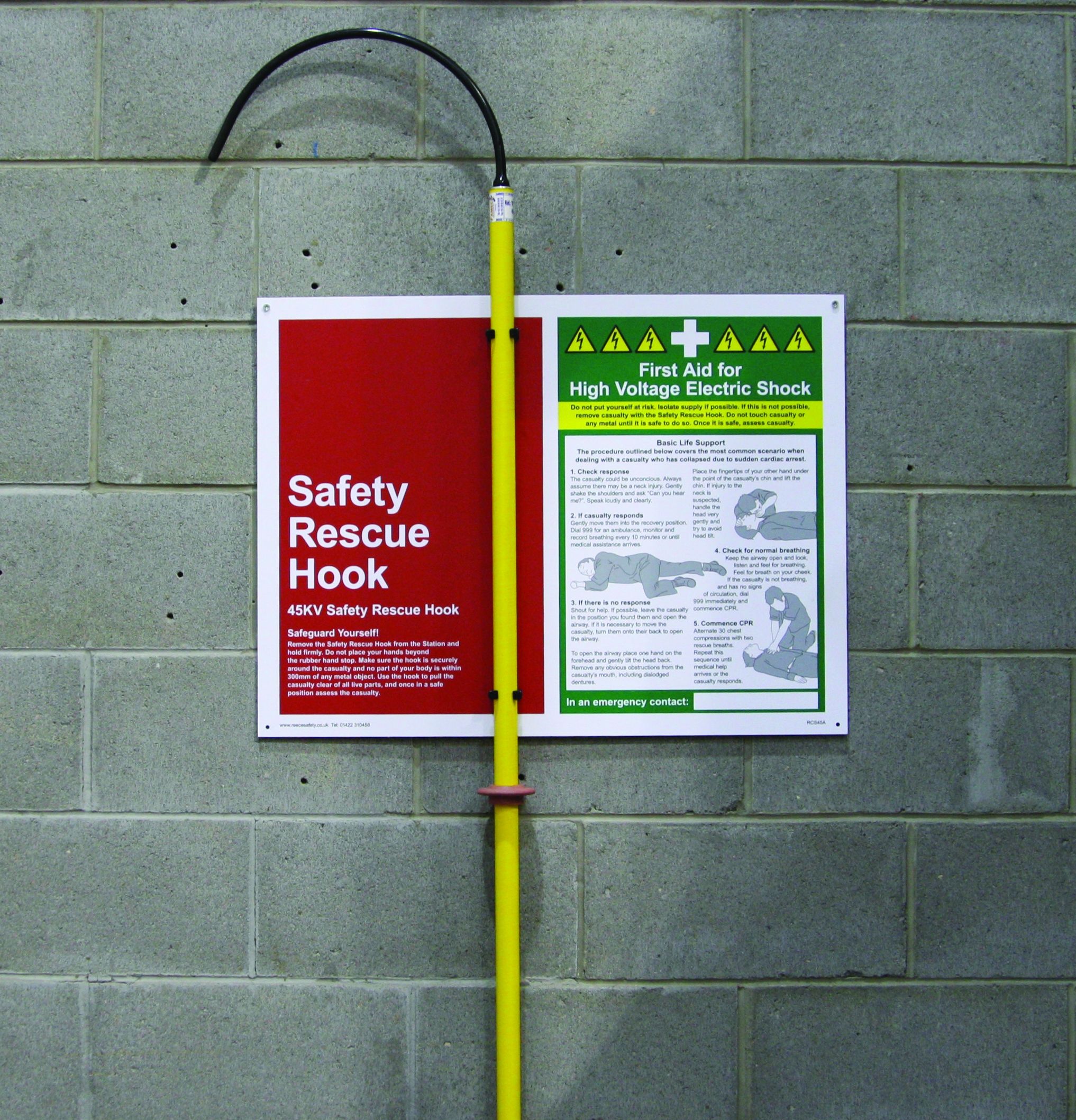 Highly visible Rescue Hook Station to allow rapid intervention in the event of an electrical incident.