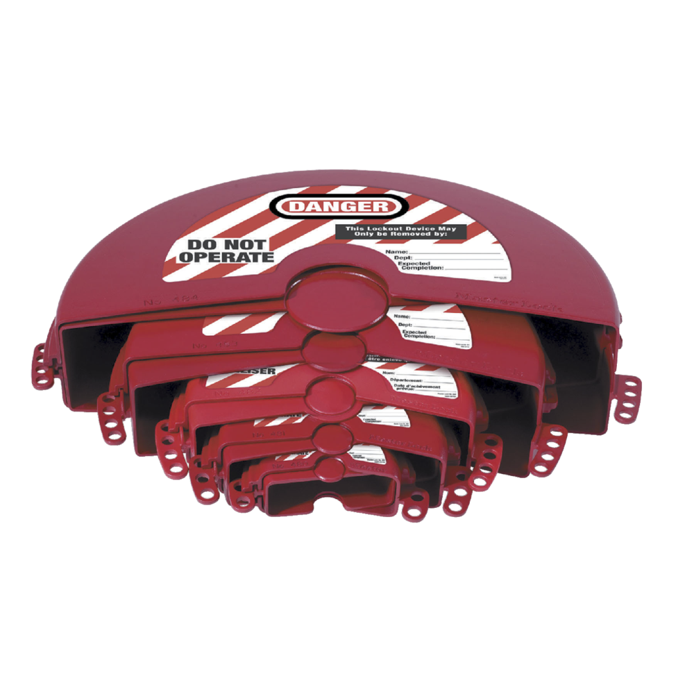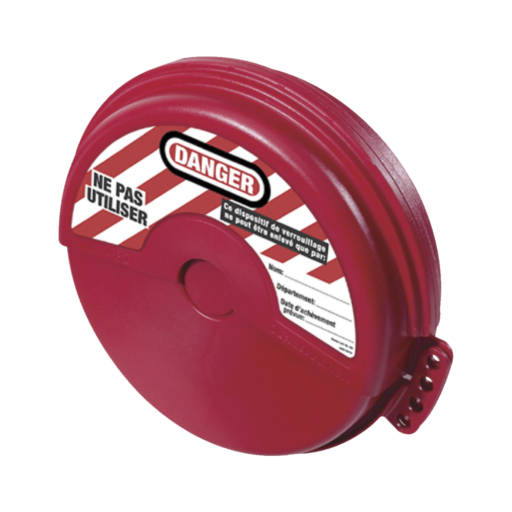 Simple to use. Place over the handwheel (Figure 1), rotate until closed and attach a padlock (Figure 2).