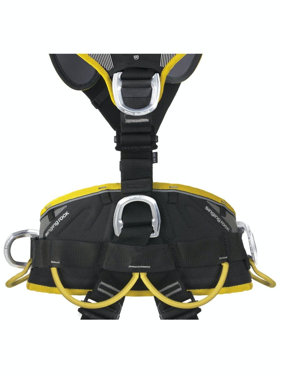 - Triple-lock Singing Rock Ozone karabiner connects the shoulder straps to the waistbelt