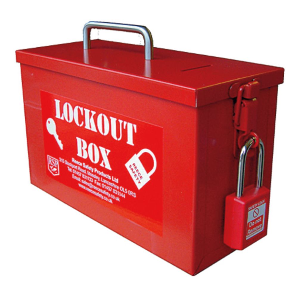 Ideal in situations where equipment has been locked out by multiple persons. Each person places their lockout keys in the box which is padlocked by one controlling person. (260x156x110mm)